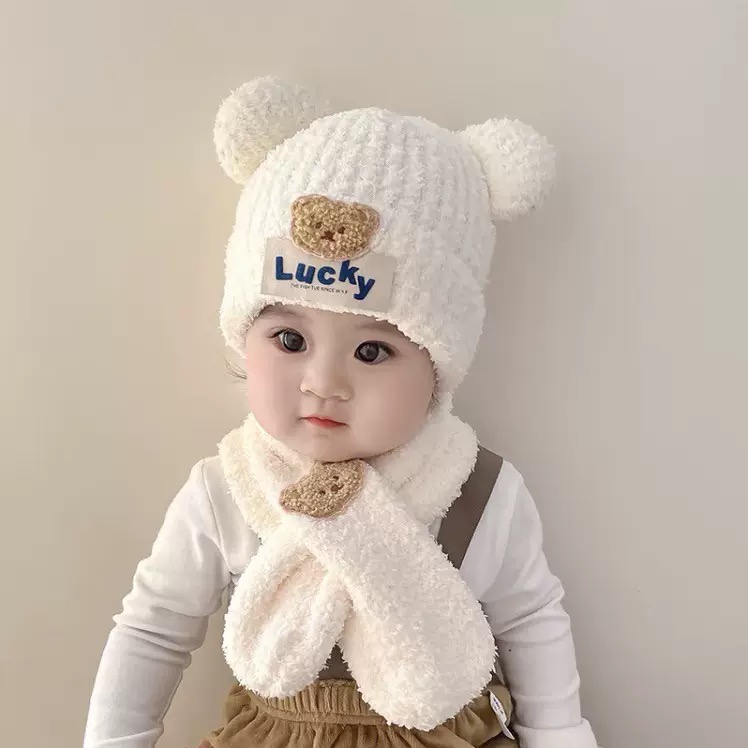 20分鐘前嬰兒帽子秋冬季可愛小熊寶寶毛絨護耳帽圍巾套裝保暖男女童套頭帽 - 商家推薦95%客戶選擇2入組NT$1199